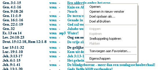 Via de linkermuisknop kunt u de "tekst" selecteren. Vaak start dan automatisch de Media player waarna het video- of audio bestand te bekijken of te beluisteren valt.
